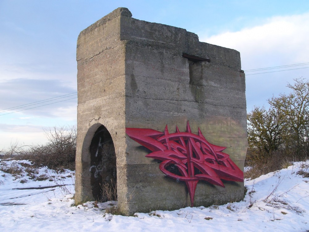 This concrete structure provided a stable foundation for the tub weighing machine mounted on top within the heapstead. Accurate weights were necessary because payments depended on them. I'm totally against daubing or splattering paint on any structure but have to admit that this particular painting is quite impressive.
