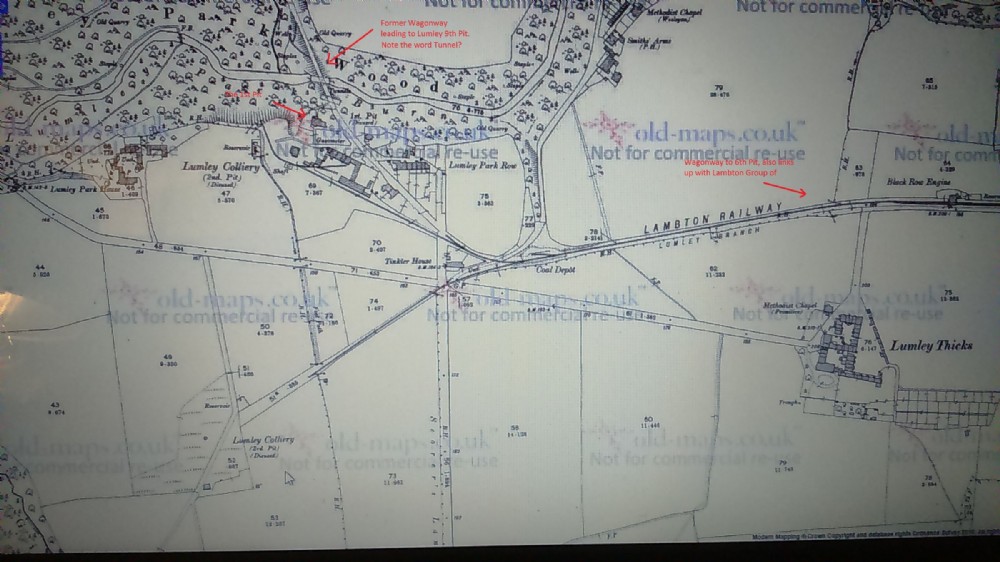 No 1 and 2 show busy scene with reservoir, gasometer but only a few houses "Lumley Park row". The Wagonway that ran through the site to The 9th pit has already been dismantled (note the use of a Tunnel, this is a very deep cutting) , whilst the 3rd pit has been marked as Disused but still has part of its railway. Today the site of 1st and 2nd Pit is a small settlement complete with Miners Bungalows with very little remains of its past. The 3rd Pit site has a number of trees planted on its former waste heap surrounded by a farmers field.