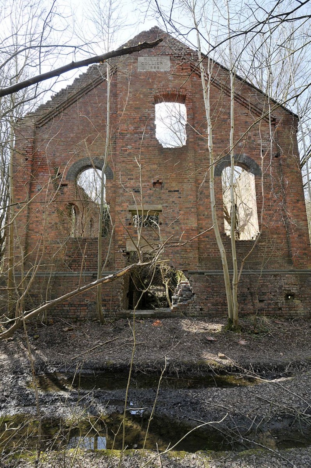 Front (Northern) wall of the large horizontal steam winding engine house built in 1896.