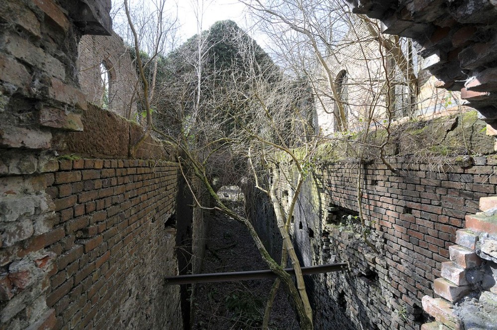 View from the frotn wall into the large horizontal steam winding engine house built in 1896.