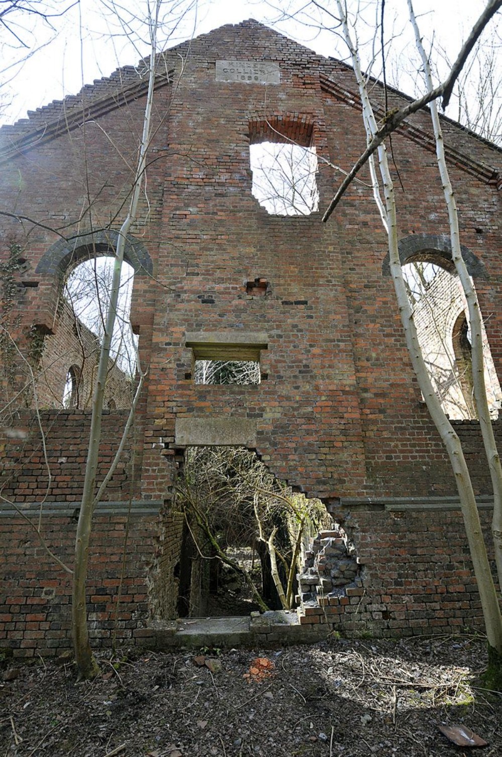 Front (Northern) wall of the large horizontal steam winding engine house built in 1896.