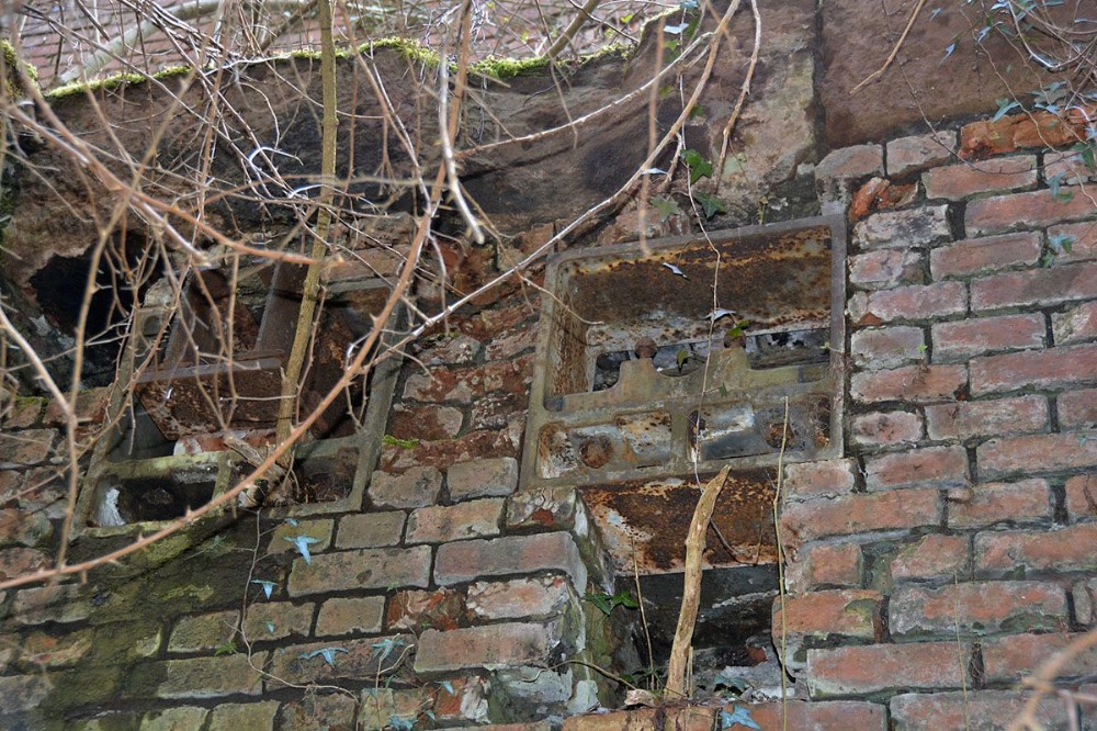 Interior of the 1896 horizontal steam winding engine house - Bearing blocks in the central wall.