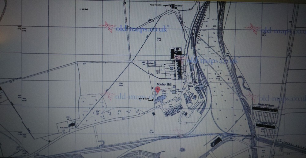 Almost a cleared site, now under The NCB, New Pit Head Baths opposite the almost defiant Middle Row, However at the top shows a new Fan House, stuck in a field. Also on this map (not in view) is a new mine between Marley hill and Byermoor, possibly "High Marley Hill Drift " http://www.dmm.org.uk/colliery/h009.htm a short lived Drift from 1948 to 1963.