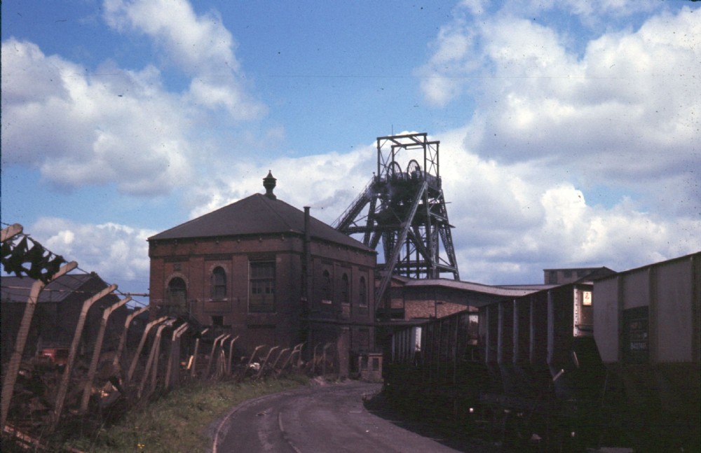 The downcast shaft with its winder still in steam inside its house dated 1906, and wagons waiting to be loaded with coal.