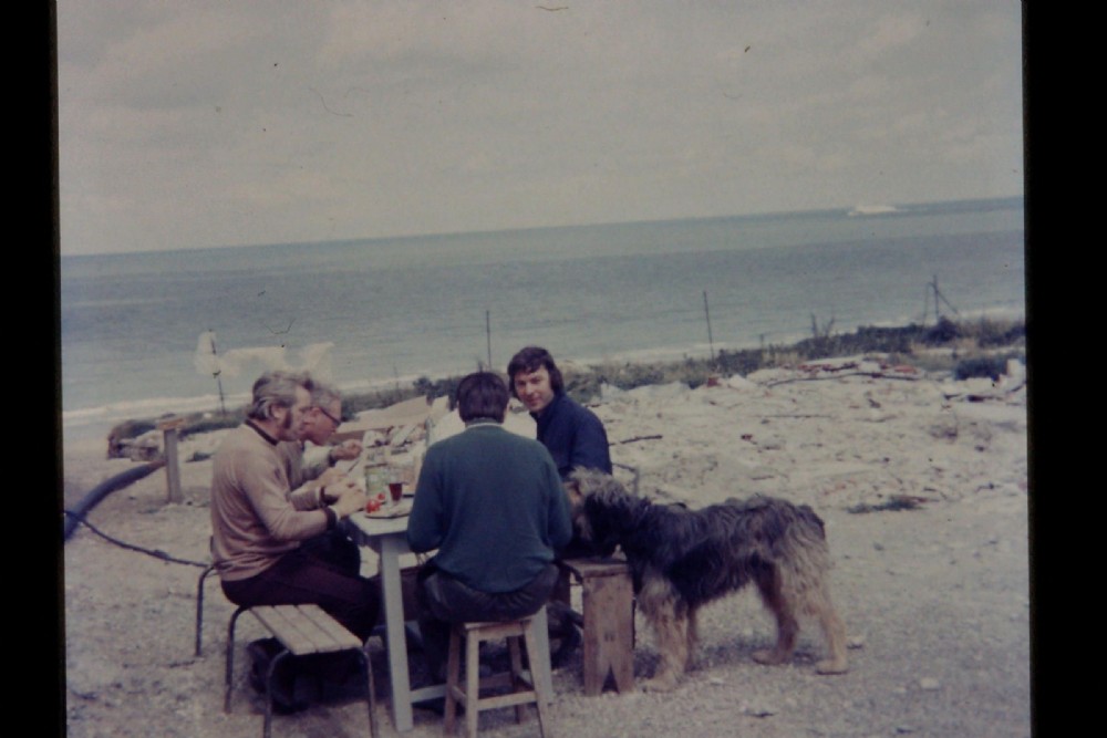 Newcastle University Rock Mechanics department dining in style on the cliff top. Lunch was cooked on site by 'le patron' from the hotel, who always brought his dog.