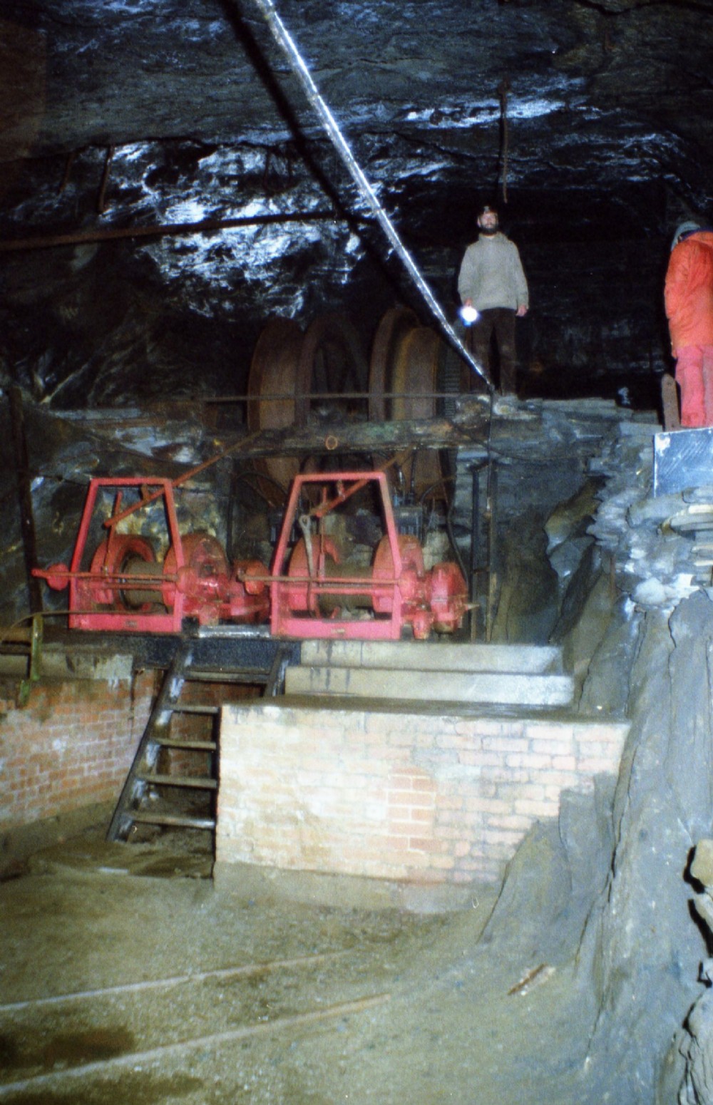 It is believed the old Robey drums were re-used by Kellow, the locomotive style boiler and engine located where Michael Lewis is standing being replaced by a 90HP electric motor and control gear.