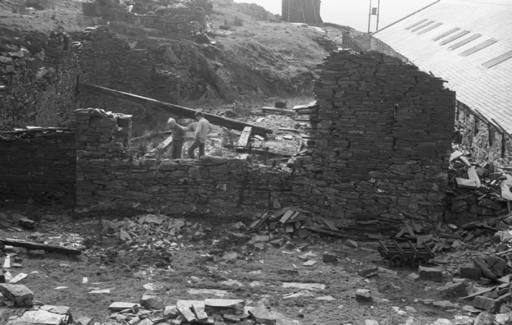 In the centre of this shot is the wheelpit for the 28ft waterwheel. In the foreground, where the slab wagon is, was part of the mill used as the "Keldril" Workshop.