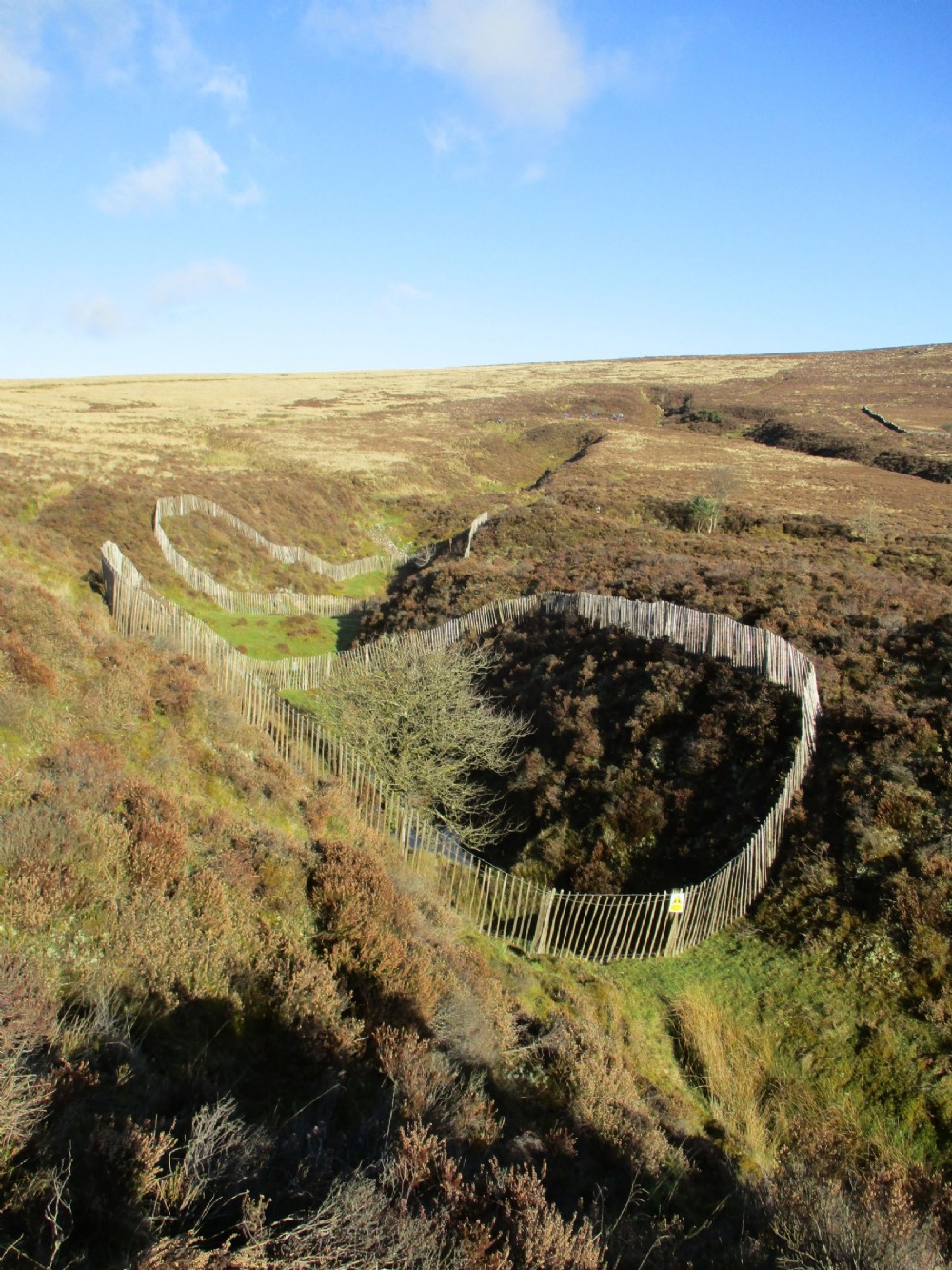 view looking NE towards Birch Tor with deep open works that have underground workings immediately underneath - hence the need for fencing.