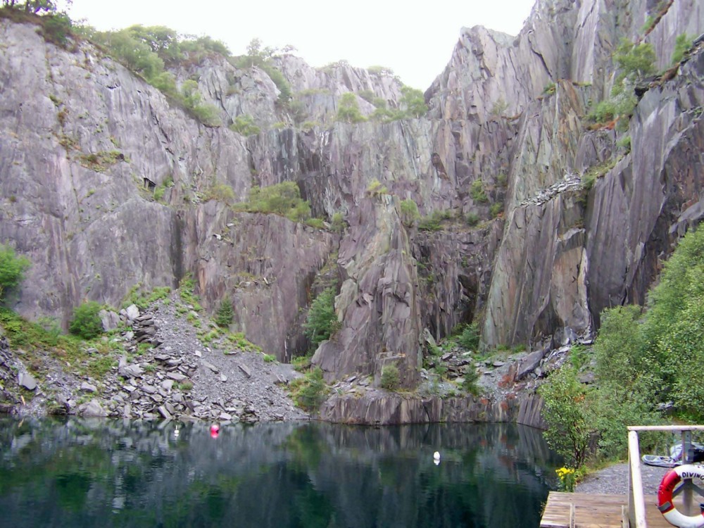 The Quarry is now flooded and used by many divers. This view was taken from near the divers ladder and due to the position gives a very false impression of the real hight of the workings which are actually several hundred feet.