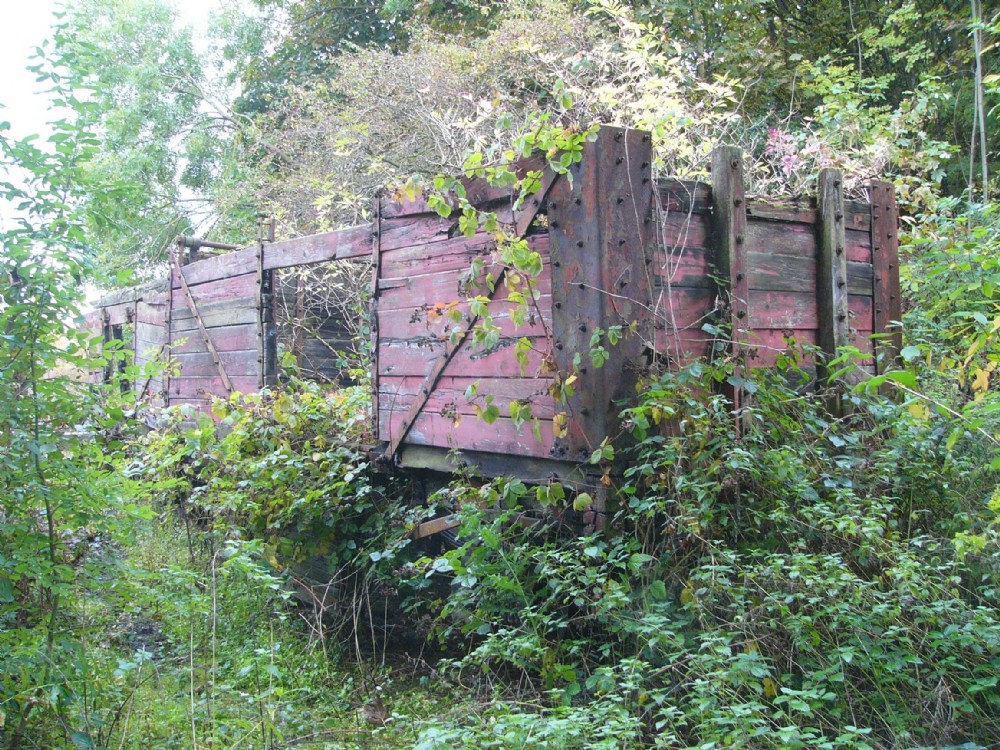 Historic wooden end-tipping wagon quite properly preserved in an industrial museum.