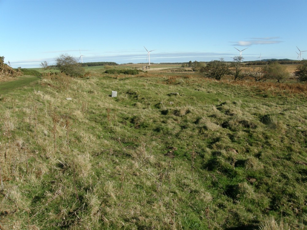 Looking east across the outline of several buildings and a shaft or two to two adjoining engine houses.