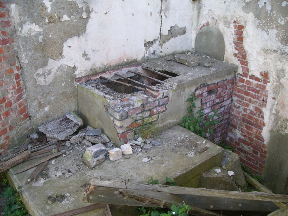 This is an airlock giving access to the fan compartment but not the shaft. Some moron has spent time and effort smashing through the concrete roof to get inside purely for the sake of it as access is available via another route. Several notices I have put up point out that these buildings are all Listed and undergoing conservation and damage to them is against the Law.