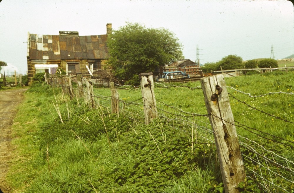The blacksmiths' shop near Low Drum, California. Fencing made from parts of tub underframe. Site now completely built over.