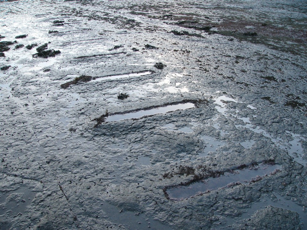 Imprints of sleepers from a narrow gauge railway on the foreshore between Penny and Old Nabs. Used for taking the Avicula seam ironstone from quarry to jetty.
