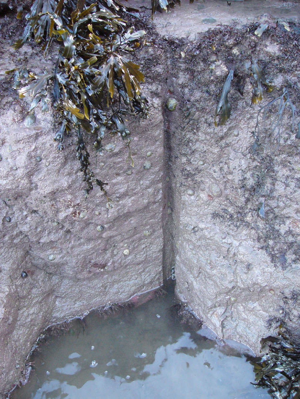 Vertical drill hole in foreshore ironstone quarry (Main Seam).