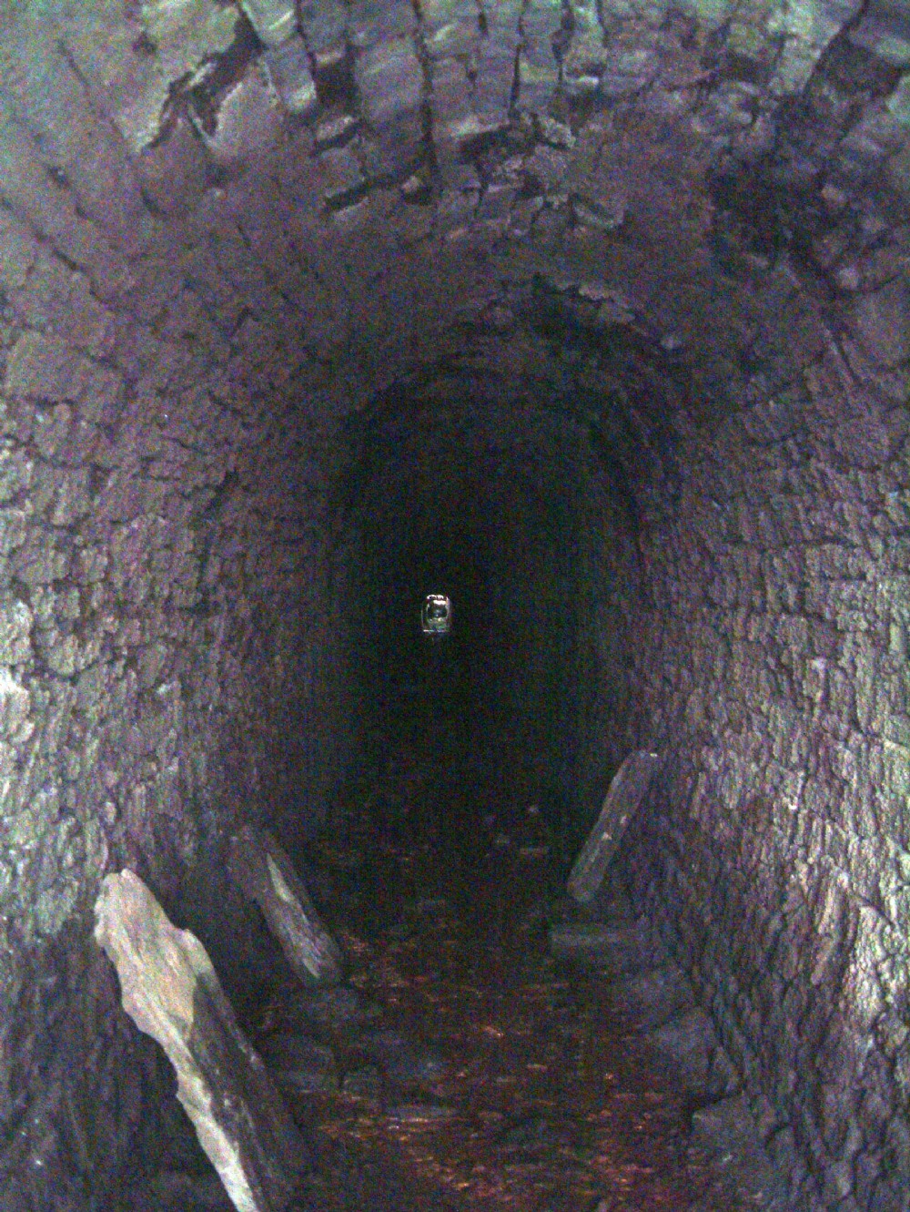 Allendale appeared to have 2 lead smelters each with a long chimney leading to a vertical chimney on high ground as it was found that more lead could be scraped from the roof of the chimney that was produced in the smelter. Young boys of around 10 years old were employed to do the scraping. Life expectancy was 3 to 4 years before they died of lead poisoning. The 2 flues crossed over each other on the way up the hillside. Here we are looking along the inside of the newer flue