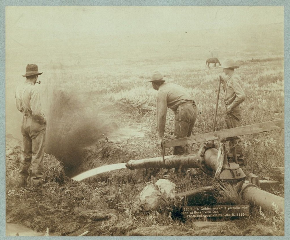 "A Golden work." Hydraulic [sic] mining at Rockdrville [i.e. Rockerville], Dak. 1889