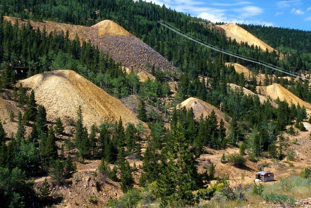 A rabbit warren of trial levels and shaft are denoted by the iron stained tips all along the hillside.