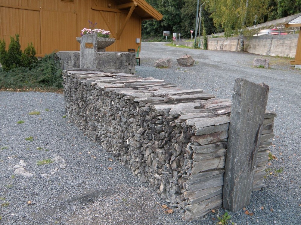 A stack of whetstone material from the Eidsborg quarry at the dockside at Dalen.