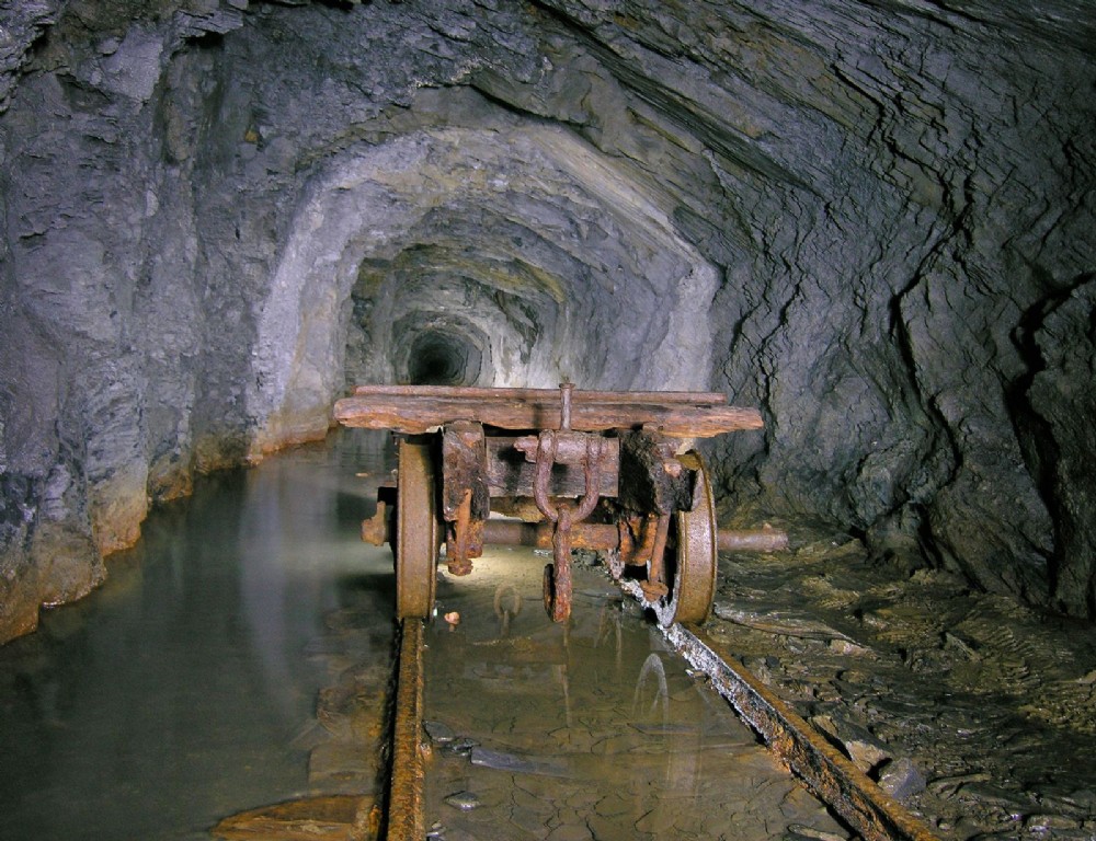 Sat in the lower adit - note the double-fanged wheels which are not fixed on the axle so that the truck can adapt to track of uncertain gauge.