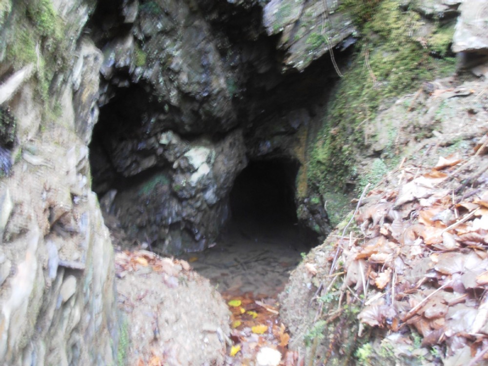 The tiny adit entrance and alcove on the left.