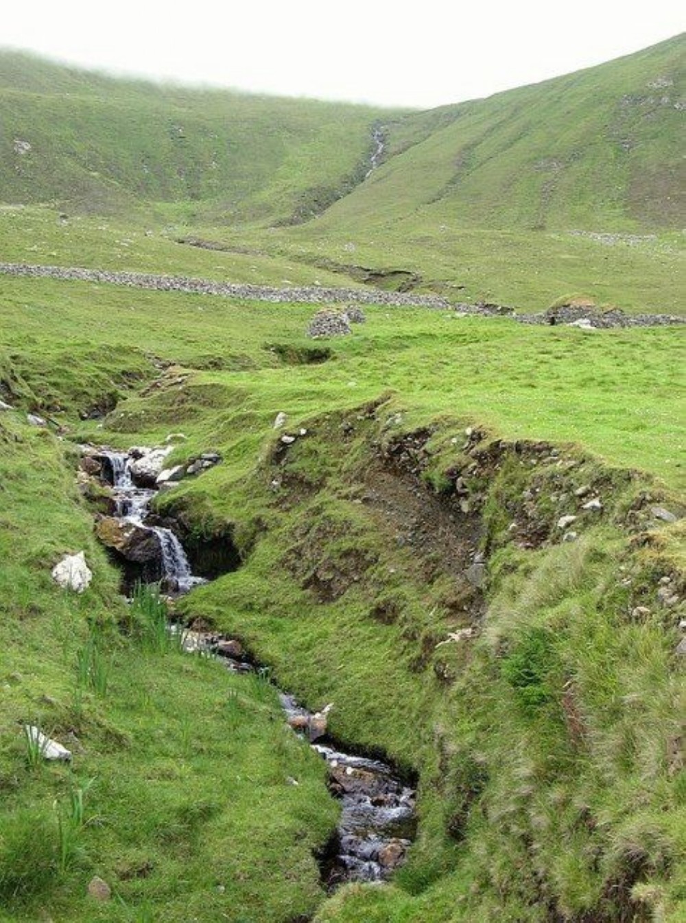 Abhainn Mhòr (Big River) rises on the slopes of Conachair and passes just to the west of the old village street on its way to the sea at Village Bay. It passes the ancient quarry which is just to the west of the bay.
