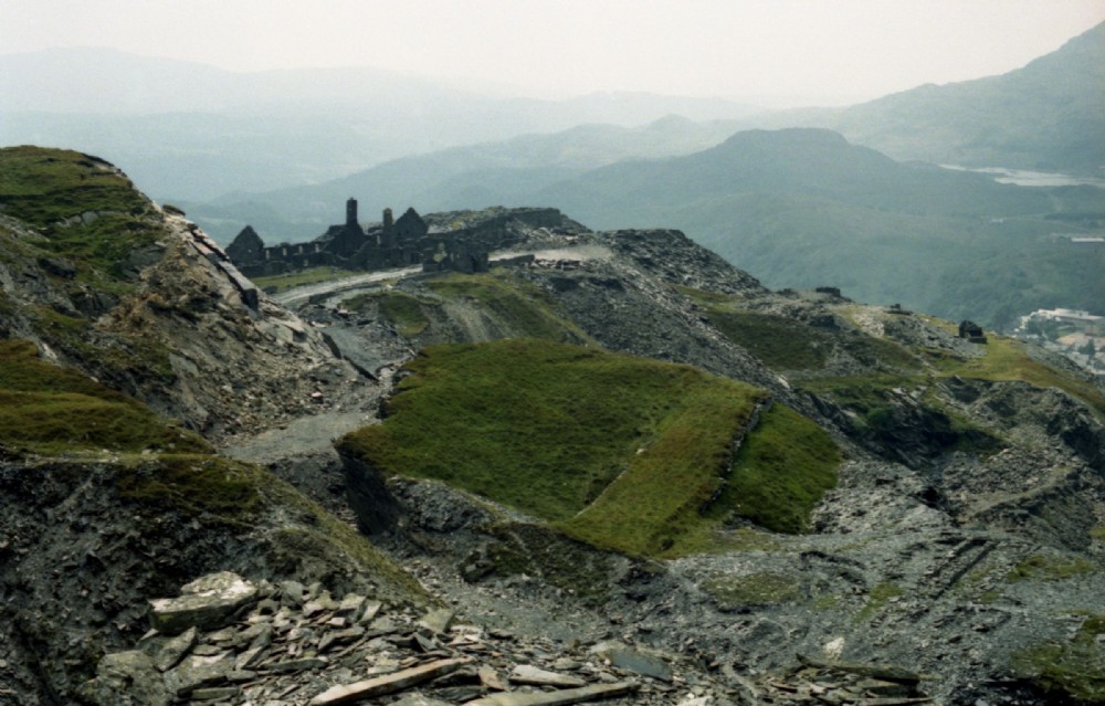 Above floor 6 is a broken, complicated area known variously as Pen yr Ochr Fawr and Pen Ffridd and Drum Boeth. This is the view looking towards the Floor 6 Mill. The green walled area in the centre is the remains of the old quarry road from floor 6 into this area.