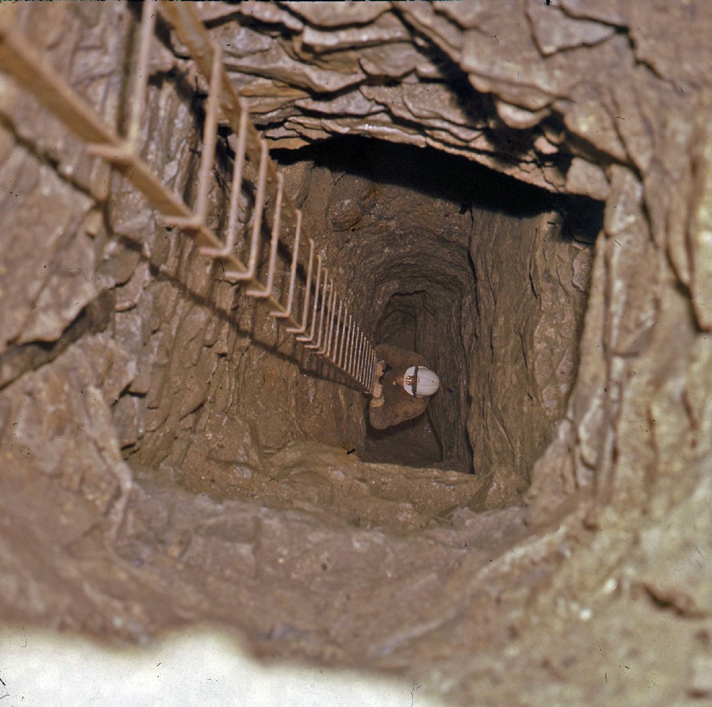 View down the shaft. I was reliably informed by the late A.E.Marsh, that this was ex-post office shelving material. But it worked - and perhaps still does?