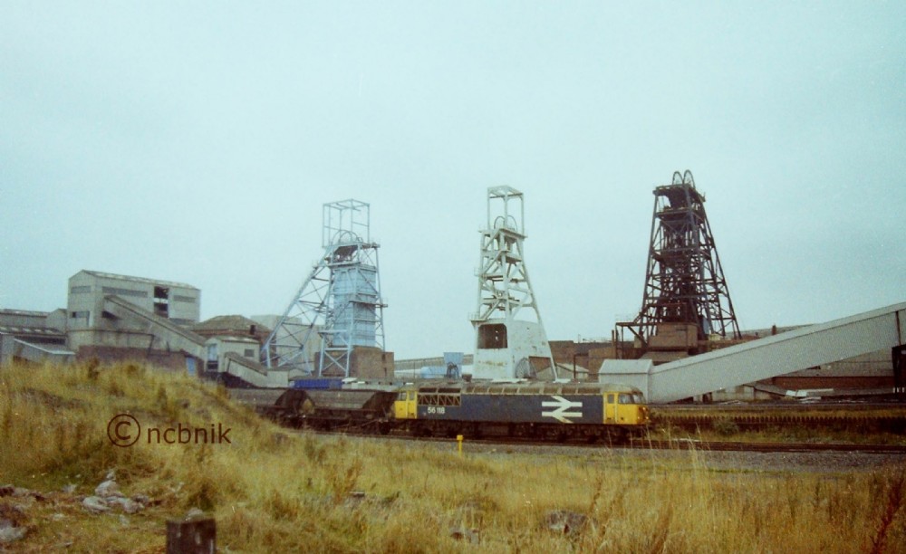 GEC engined 'Brush' 56 118 heads East past Acton Hall colliery, Featherstone, West Yorkshire c.1980