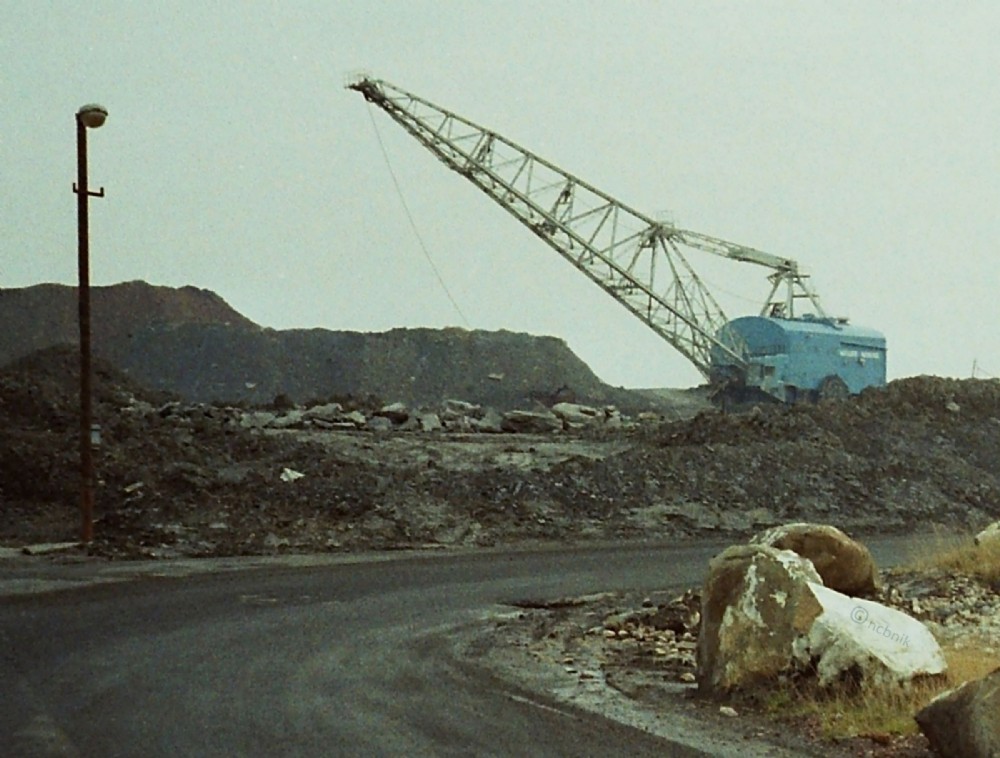 This venerable old drag-line, by the time this photo was taken, had spent well over twenty years wandering around the area, opencasting parts of the Snydale village, Snydale Colliery area and had finally pitched up here; reclaiming Acton Hall's enormous slag heap.