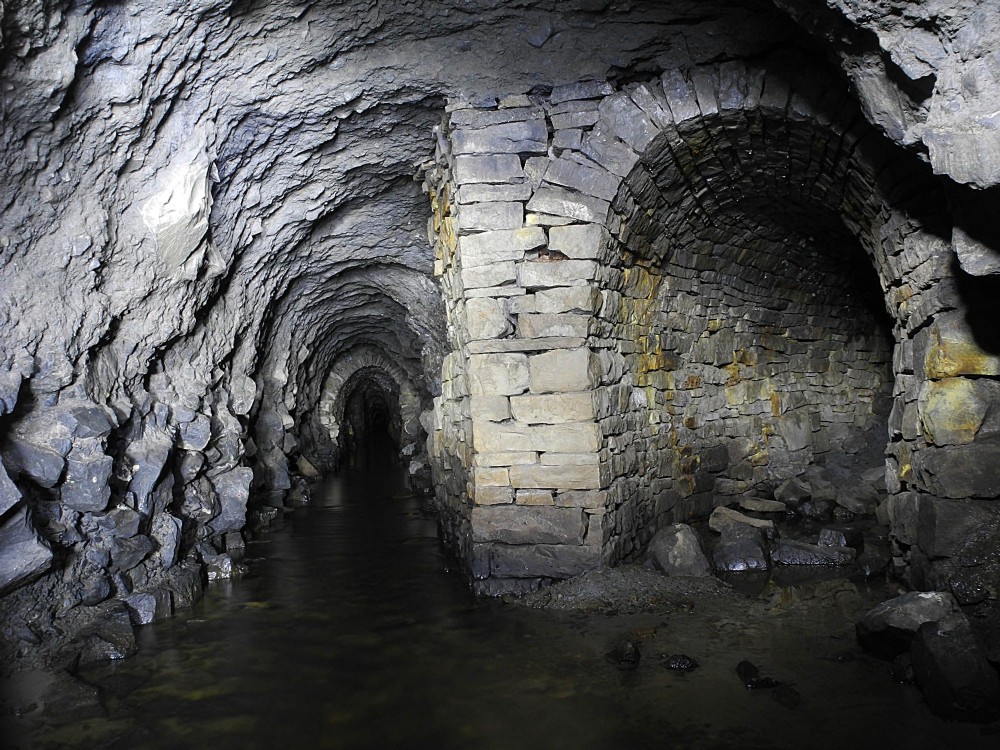 Level where is reaches the weathered outcrop of the limestone. This can be seen overlain by boulder clay in the left wall.