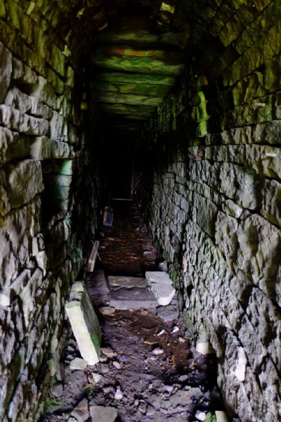 A few metres inbye the water flows in to a stone drain set to one side and emerges in the Gill below the level mouth.