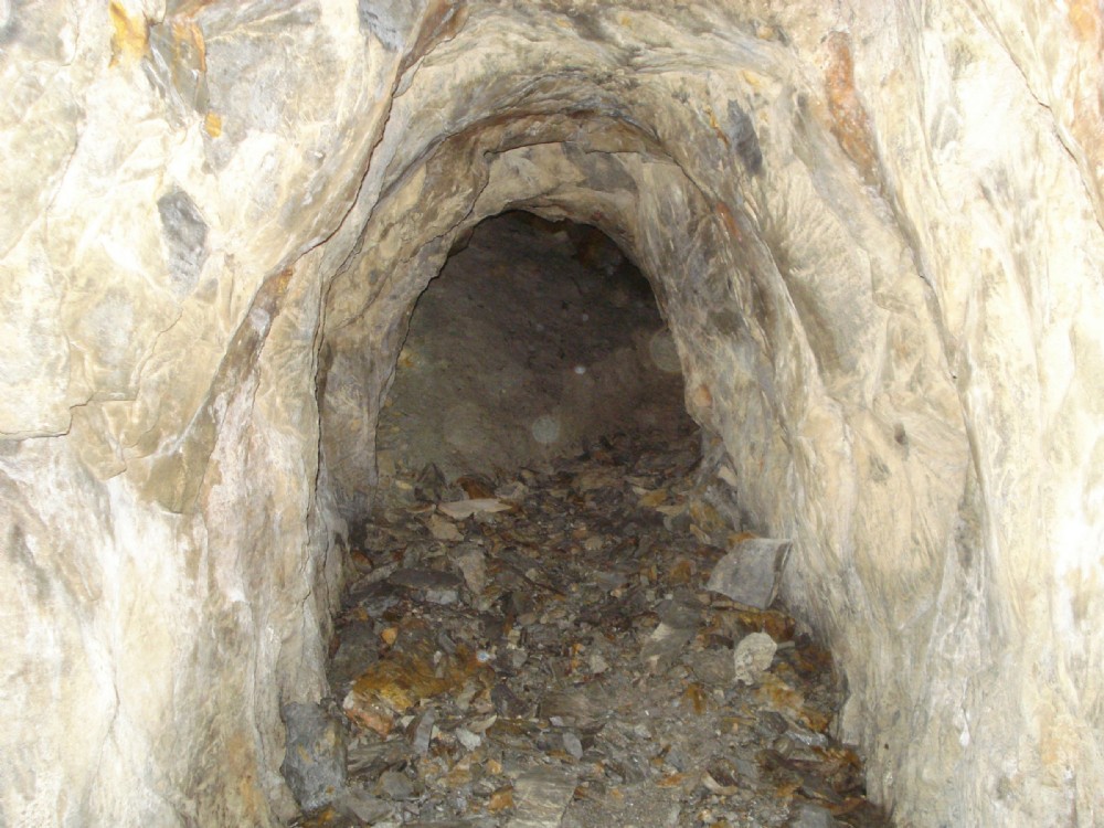 The point at which the adit reaches the vein.