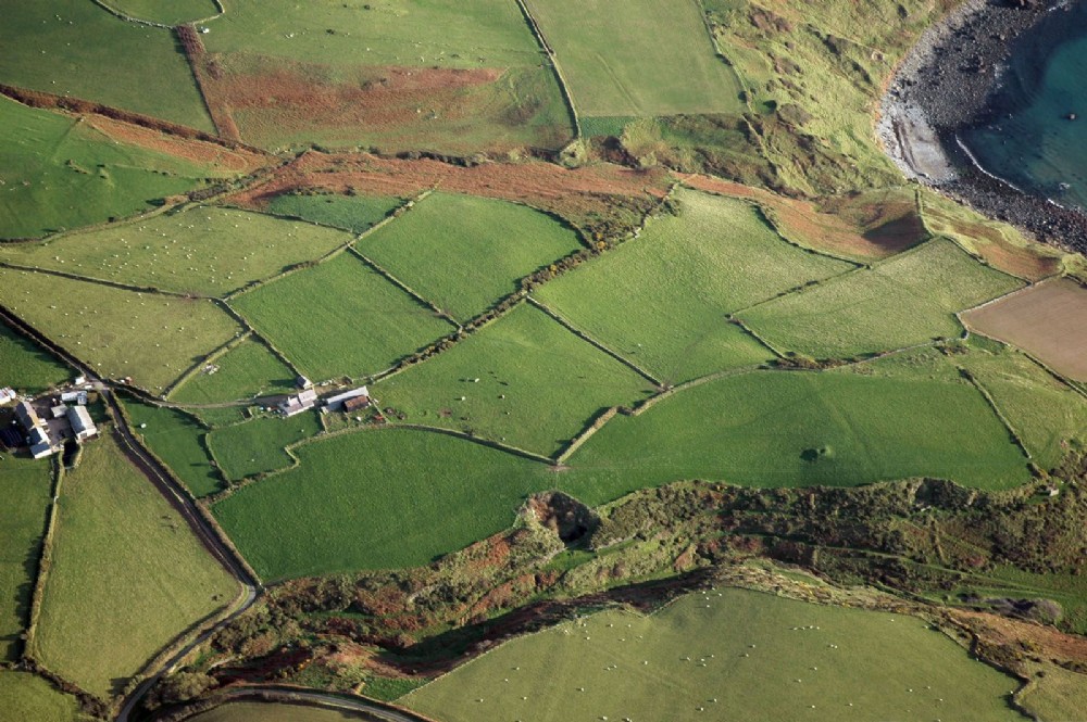 Nant y Gadwen leading down towards Porth Ysgo. Tramways clearly visible. Manganese waste tip can be seen at bottom right.