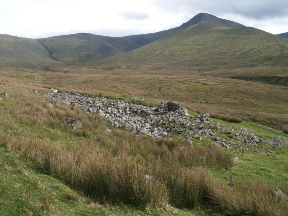 View of dressing sheds/gwaliau. These are to the East of the quarry rather than on the West, exit side, probably because there is flatter, drier ground here. The remains indicate that they were double sided.