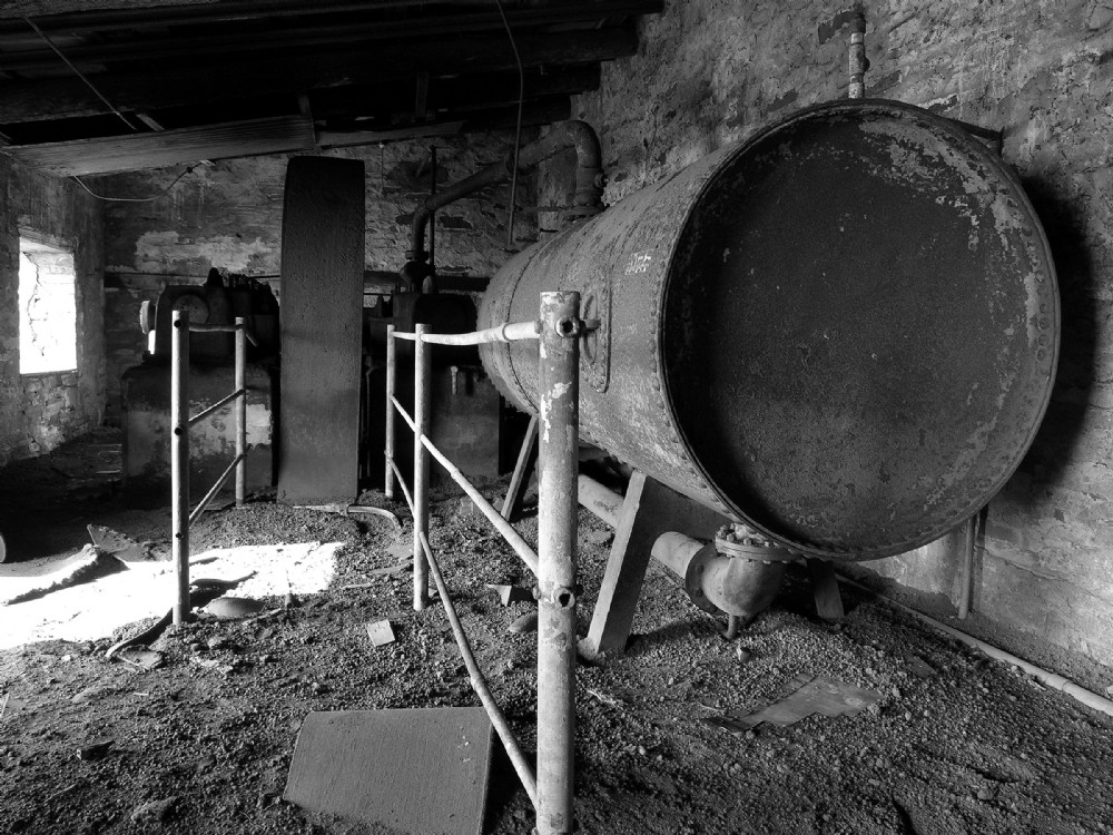 Air reciever for the two stage piston type air compressor at Dinorwig slate quarry, upper mill level.