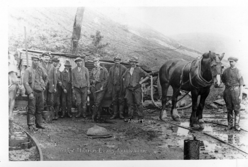 Taken in about 1930 Albert Thomas Evans the owner of Graig Ddu is shown with his sons and other workers