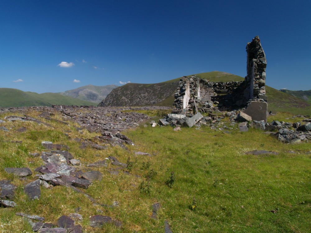 Landscape view from the top level with the remains of the electricity sub-station on the right. Snowdon, on the left, in the far distance.