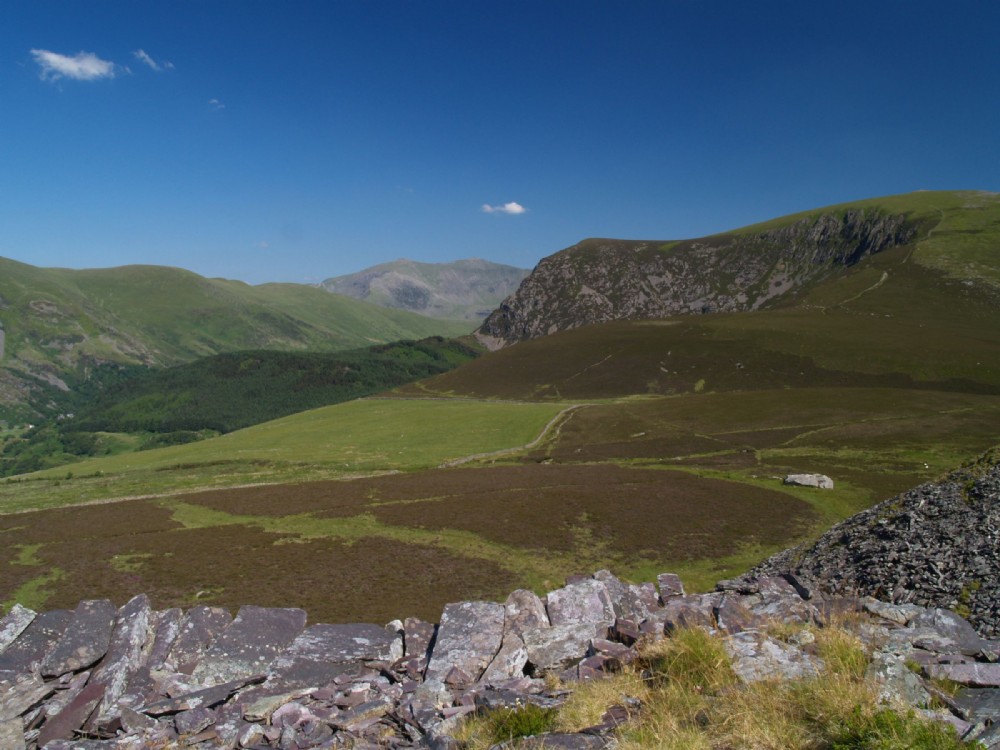 Landscape view from the top level of the W. tips looking over Nant y Betws with Snowdon in the distance.
