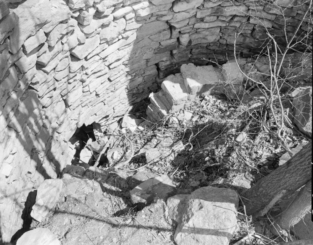 ALPINA FURNACE, VIEW FROM TRUNCATED TOP SHOWING OUTER (STONE) AND INNER (BRICK) WALLS.