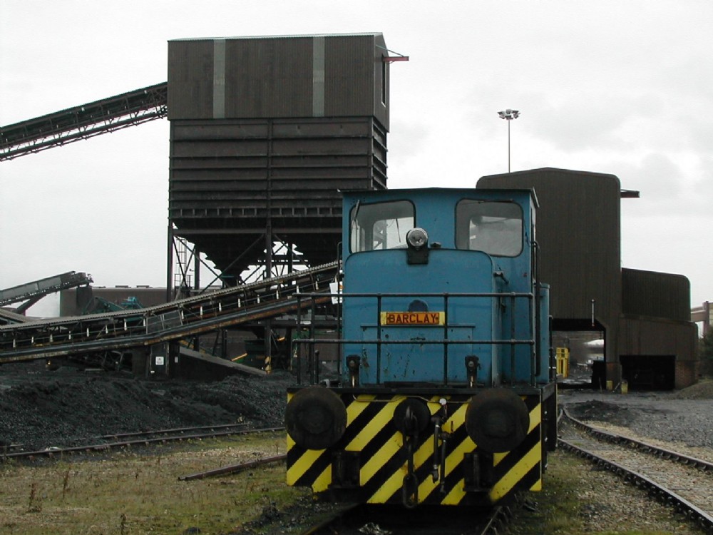 Loco is seen in front of the bulk train loading hoppers and conveyors.