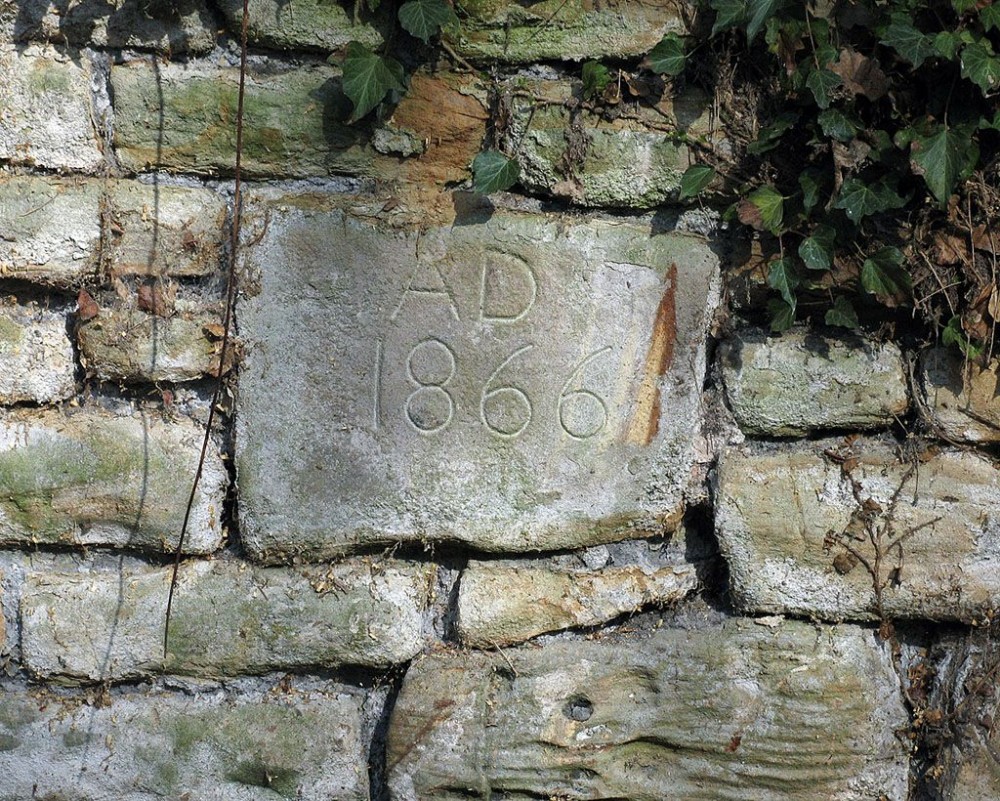 The Anson Pit was extensively remodelled and modernised in 1866. This stone is situated in the retaining wall of the yard where railway wagons were loaded beneath the screens.