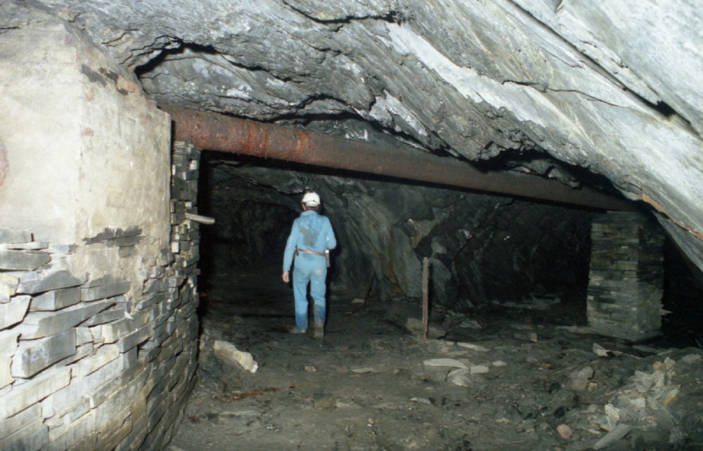 The pipe rose significantly now, onto high slab piers and crossed the level to enter chamber B1. Will is investigating a south going level.