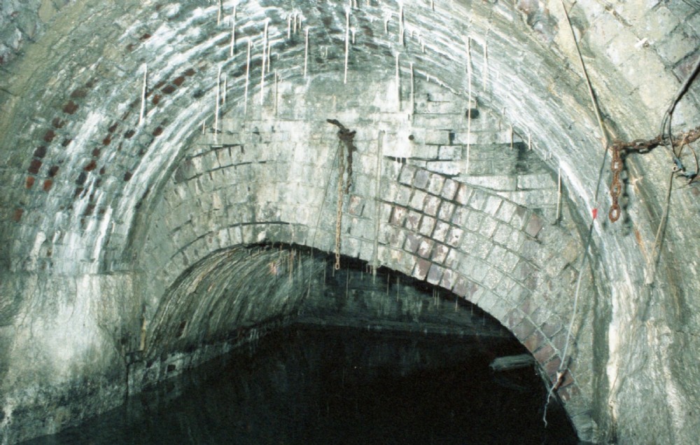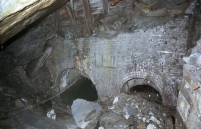 This is the western arch, whose incline tracks connected to floors I and K. The original incline had two tracks, one for each floor, but these were combined after the boulder fell.