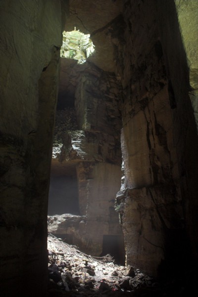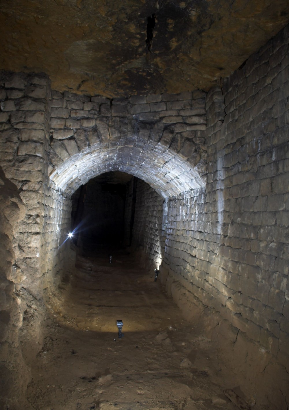 note smoke blacking in centre of tunnel roof from steam engines use on the stone hauling internal railway.