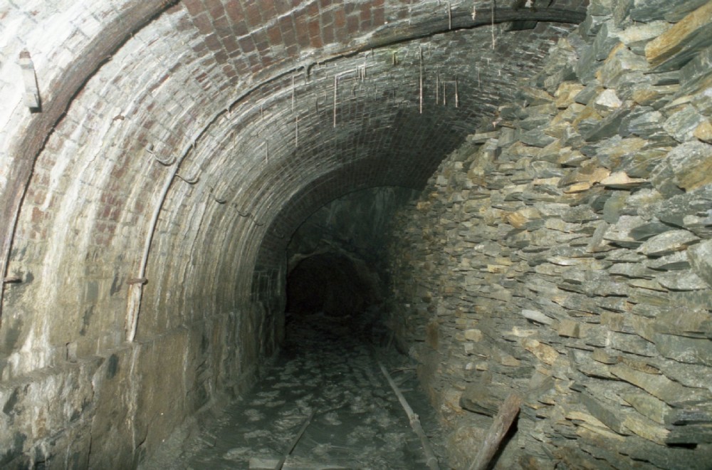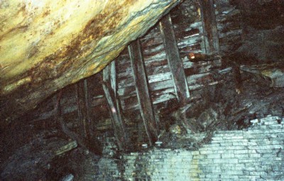 The eastern side of the archway appears to have been subsequently propped up or reinforced with the additional slabs shown here. Beyond the slabs can be seen the point the level passes into the solid rock.