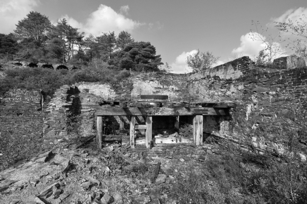 The reamains of the arsenic crushing mill at Devon Great Consols, The grind stone is situated on top of the wooden structure. September 2008.