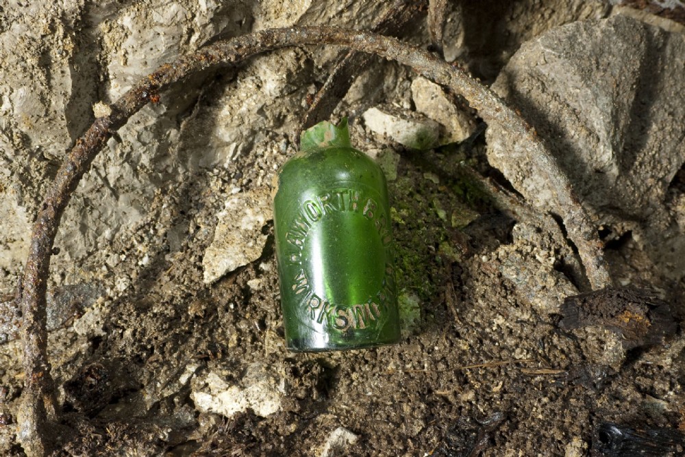 Bottle and bucket handle, 230 foot level near foot of climbing shaft.