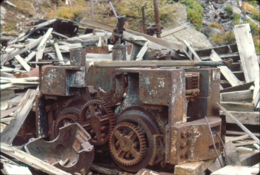 Electric mule, overhead trolley type (with broken off trolley pole laying on top). Photo taken September 1976