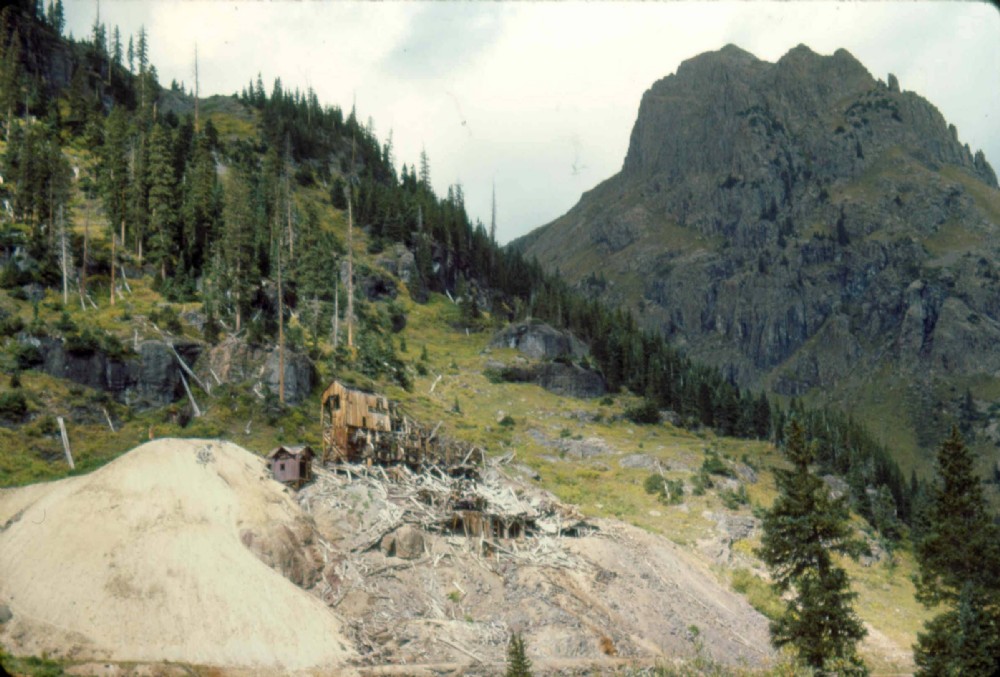 Stamp mill ruins - photo taken September 1976. Stony Mountain in background.